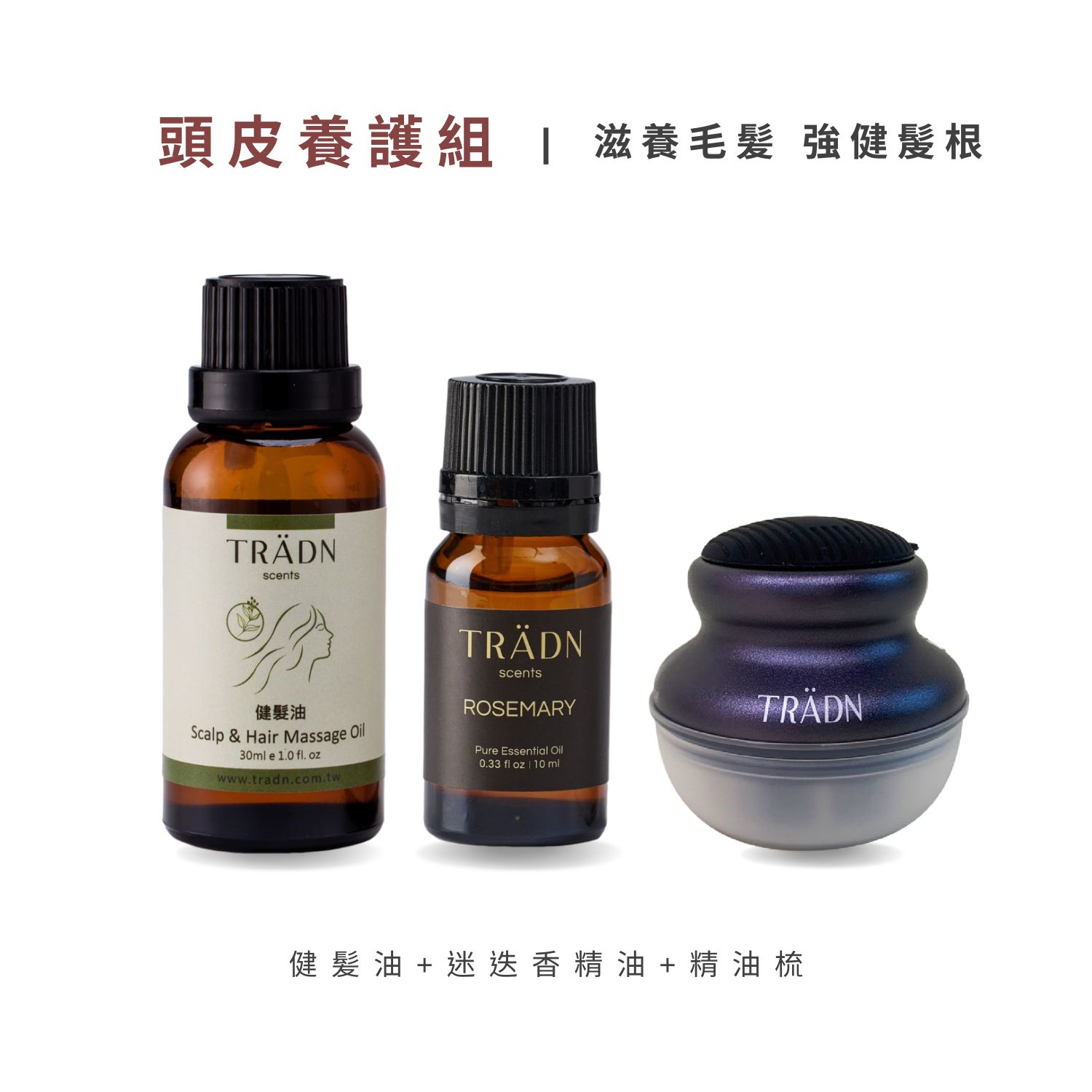 使用方式 搭配精油梳,將健髪油取適量滴入精油梳液箱內,用精油梳由前額往後腦勺梳,左右2邊亦同,按摩油梳於頭皮後以指腹加強按摩3~5分鐘,停留15分鐘後再用洗髮精(可加入4~6滴迷迭香精油)清潔髪絲及清水沖洗乾淨。
